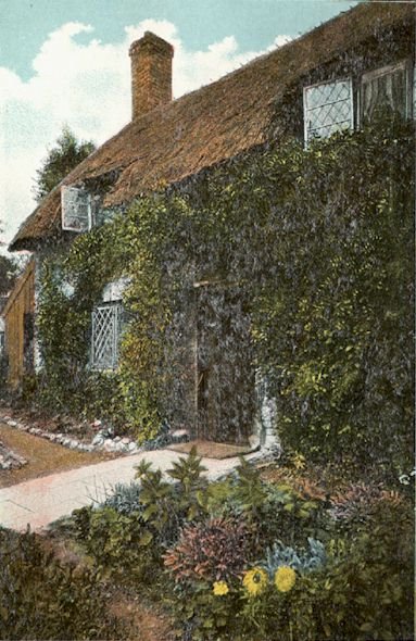 Little Jane's Cottage, Brading.-This cottage still retains its original appearance with thatched roof and diamond window-panes, a real old-fashioned Isle of Wight cottage, many of which are fast disappearing. The little forecourt and garden are well kept. The greenery covering the front, of plants of great variety, from the yellow jessamine to the red fuchsia, with flowers under and around the windows, combine in completing a picture of great beauty. Here Jane the young cottager lived when Rev. Legh Richmond was Vicar of Brading in the early part of last century. Her tombstone is at the back of Brading Church. |