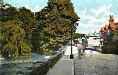 The Pond, Bonchurch. One of the show places of the Isle of Wight known throughout the world by the lovely pictures that have been made of it. It has lately fallen into disrepute by the destruction of some of its beautiful trees, but more specially by the leakage of the pond which left it stagnant, dirty, and partly dry. This has now to a large extent been remedied, and the pond once more assumes its former aspect, giving reflection in its surface to the lovely forms of beautiful foliage with which it is overhung. The village is one mile from Ventnor. |