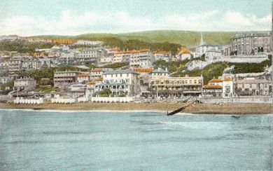 Ventnor, From The Sea.-Built on the slopes of the hill, Ventnor presents from the sea a remarkable and magnificent picture. Each house being at a different elevation, commands sunshine all the day. Sheltered from the cold wind, trees and flowers flourish and retain their beauty during the winter. When the golden gorse and purple heather are in bloom upon the downs it forms a most attractive scene. Steamboat trips daily during the summer furnish the visitors with abundant opportunities of enjoying this vision of beauty. The Railway Station lies between the hills behind the Church spire. The Town Station of the Isle of Wight Central Railway lies to the left beyond the Park. |